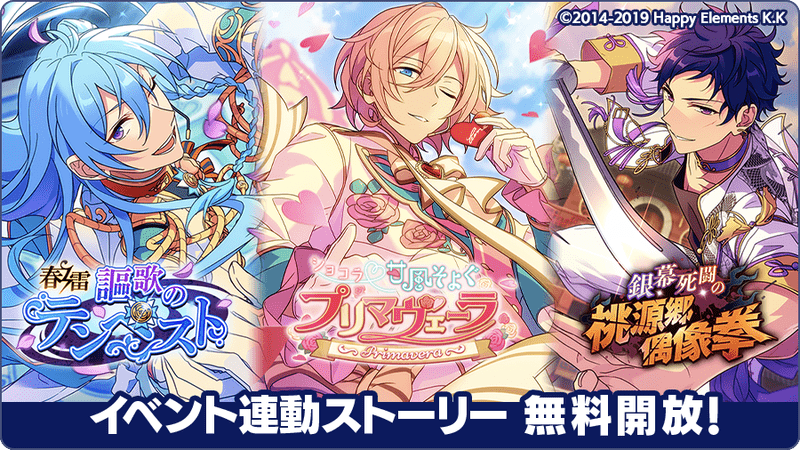 2021年03月31日のユニット新曲イベント「ショコラ♥︎甘風そよぐプリマヴェーラ」から、イベント関連ユニットの過去イベントストーリーを期間限定で無料公開されます。期間中にストーリーを読むことで、期間後も開放状態となり、いつでもストーリーを読み返せるようになります。