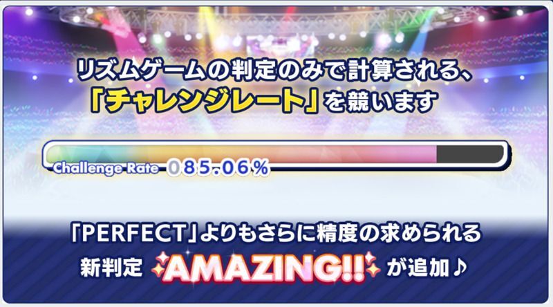 さらに、ライブチャレンジ専用の「AMAZING」判定では「PERFECT」に比べてさらに高い精度が求められます。