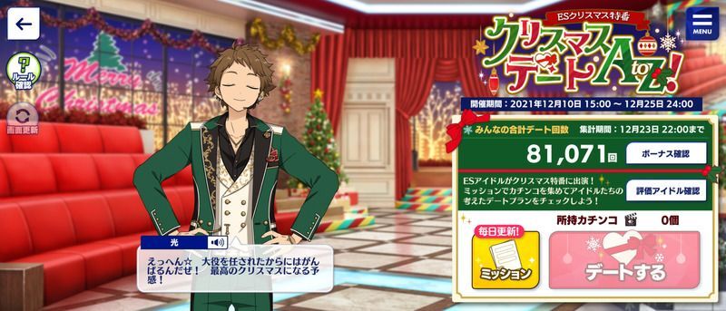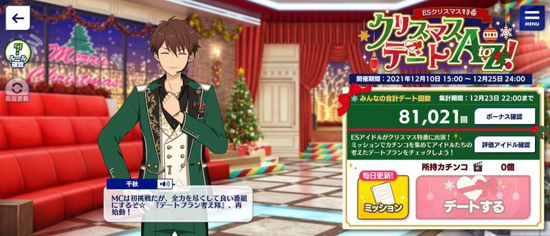 さらに全プロデューサーがチェックしたデートの合計回数で12月25日にもらえるESからのクリスマスプレゼントがどんどん豪華になります。