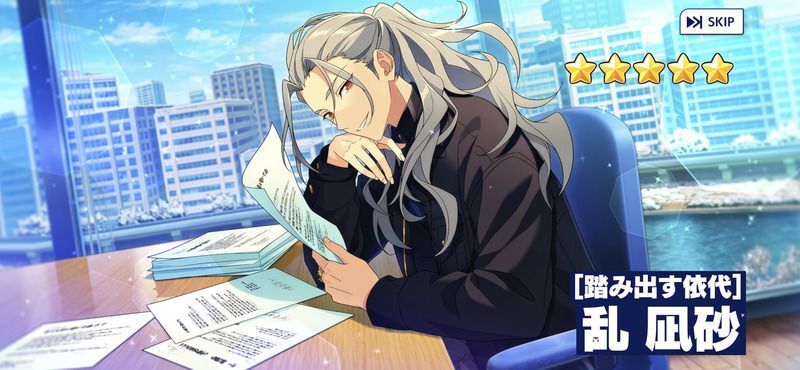 『リズムゲーム版あんスタ(あんさんぶるスターズ!!Music)』☆5「[踏み出す依代]乱 凪砂」のカード情報ページです。ステータスや追加日、アイドルロード情報などを掲載しています。