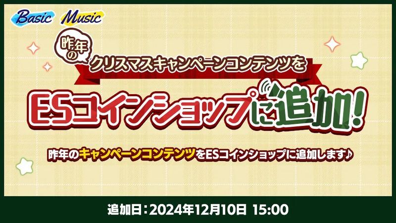 ESコインショップに昨年のクリスマスキャンペーンコンテンツを追加