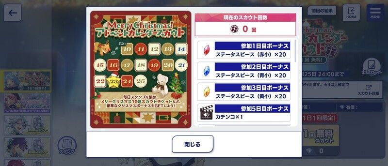 期間中、Merry Christmas!アドベントカレンダースカウトを引くと「クリスマスアドベントカレンダー(スタンプカード)」にスタンプが押されます。