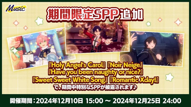 期間中「Holy Angel’s Carol」「Noir Neige」「Have you been naughty or nice?」「Sweet Sweet White Song」「Romantic Xday!」で、特別なSPPが披露されます♪