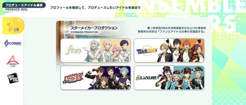 当ページは、Happy Elements株式会社「あんさんぶるスターズ!!Music」「あんさんぶるスターズ!!Bright me up!!Music」の画像を利用しております。