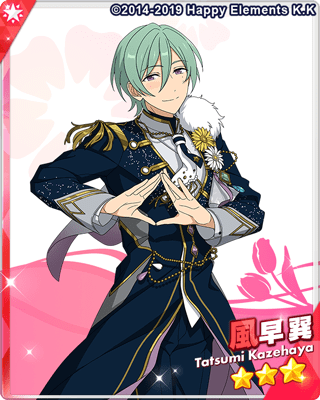 『リズムゲーム版あんスタ(あんさんぶるスターズ!!Music)』☆3「[[ダイヤブルーム]風早 巽」のカード情報ページです。ステータスや追加日、アイドルロード情報などを掲載しています。