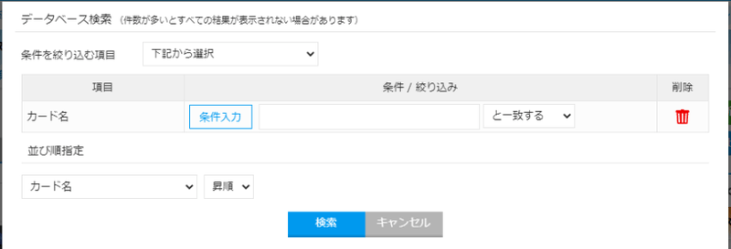 検索結果は100件までしか表示されないため、カード数が多い場合は細かく指定して絞り込んでください。