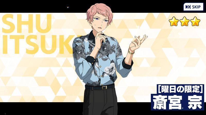 『リズムゲーム版あんスタ(あんさんぶるスターズ!!Music)』☆3「[曜日の限定]斎宮 宗」のカード情報ページです。ステータスや追加日、アイドルロード情報などを掲載しています。