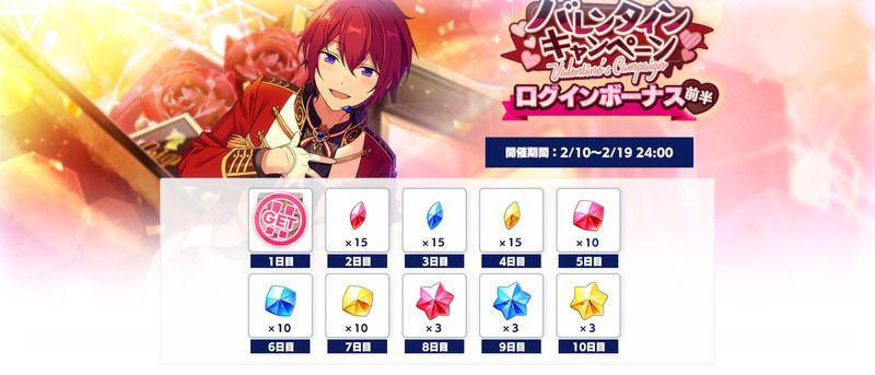 | 前半 | 2021年02月10日 00:00 ~ 02月19日 23:59 ※ログイン日数は0時切り替えです。 |