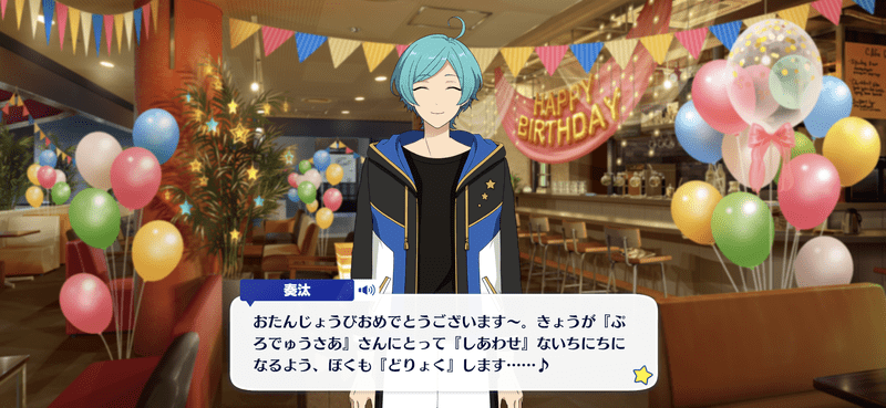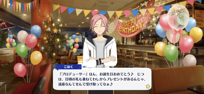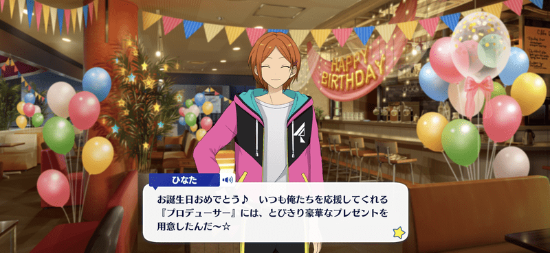 | お誕生日おめでとう♪ いつも俺たちを応援してくれる『プロデューサー』には、とびきり豪華なプレゼントを用意したんだ~☆ | |
