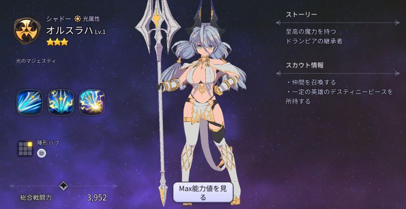 | 戦闘力 | 3,952 / 13,680 |