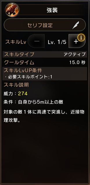 ※スキルのスキルレベルは、レベル1です。