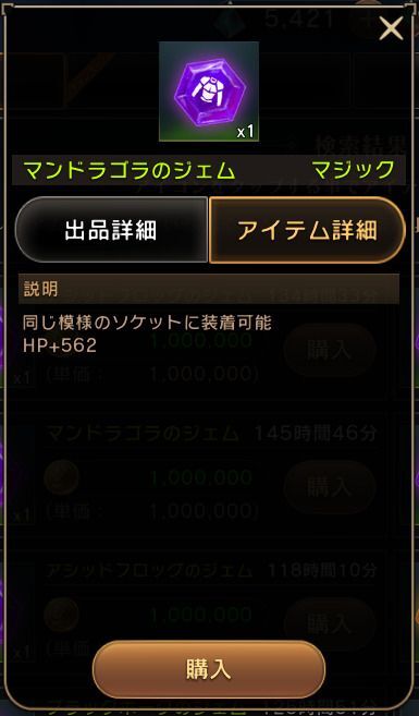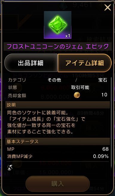 本ページでは取引所に出品されていたジェムを