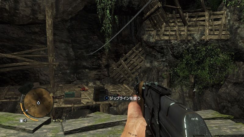 | ・ジップラインで下へ向かう ・先に進み、2回目のジップライン ![]() ・2回目のジップラインの方がやりやすい ・ジップラインで移動中、敵が見えたらXボタンで落下 そのままXボタンでデスフロムアバブ 取れなかったら、やられてリスタート (1回目のジップラインから) ・下に降りて先に進み、3回目のジップライン ・ジップライン後、ボディアーマーとメディカルキット | |