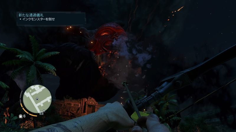 ・武器は自動で弓に変わる![]() ・インクモンスターの仮面を弓で撃つ ・何度か繰り返すと次の戦いへ ![]() ・人型サイズのインクモンスターが多数襲って来るので 倒し続ける ・雨の様な演出で視界が見づらいので注意 ![]() ・第一形態同様インクモンスターの仮面を弓で撃つ ・投げてくる球状の煙は破壊可能 | |