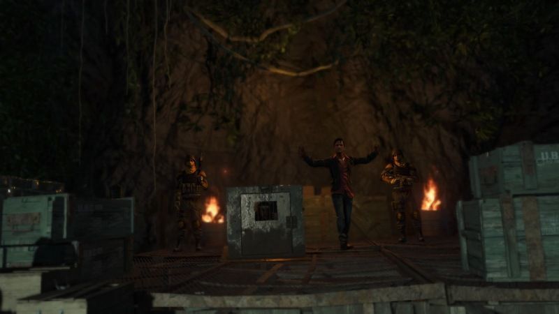 | ・マーカーに向かって進んでいく ・斜面を降りた洞窟入口、敵兵 少し待っていると奥に歩き出すのでついて行く ![]() ・座っている男の後ろを通り、右側通路へ降りる ![]() ・そのまま進み、下へ | |