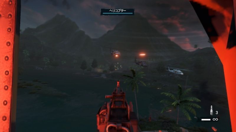 | 【推奨取得スキル】 ・クールガンナー(機銃のオーバーヒート延長) ・イベイシブドライブ(ダメージ軽減) ・機銃を使い敵を倒す ・少しすると離陸 ・ヘリの耐久力が無くなるとミッション失敗 (失敗時は離陸前③から再スタート) 慣れないと地味に難しい RPGの減りが大きいので、最優先でRPG兵倒す事 ![]() ・ここで結構減ったならリスタート推奨 ![]() ・橋の上、機銃車両 ・空港上空通過時、RPG兵多数 車両、ヘリ、建物を撃ち爆破で巻き込む? たぶん、ここが一番難所 ![]() ・川の上でボート ・その後、敵ヘリ3機出現 ・報酬:経験値5000xp | |