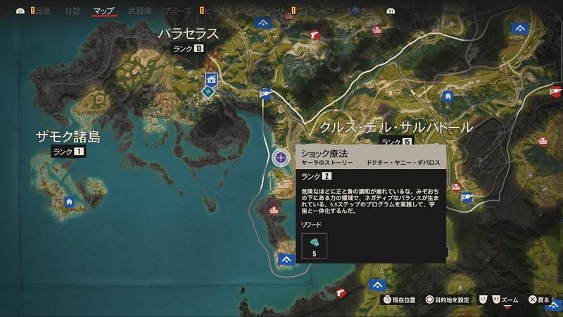 ![]() ![]() ・ツタを上り、岩からジャンプ ・武器をしまい、ワシの巣の上で30秒待つ ・Dr.ダバロスと連絡 (時間経過で自動的に電話する) | |