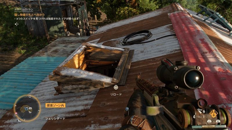 ※白矢印の方向へ進んでいけばOK![]() ・同じく3連ジップライン ・板を壊して先へ、上に登る ・ジップラインからグラップルで先へ ・連続ジップライン ・右の岩を上り、左へジャンプ、ハシゴ ・その先もグラップルとジップライン ・岩を左右にジャンプで登る ![]() | |