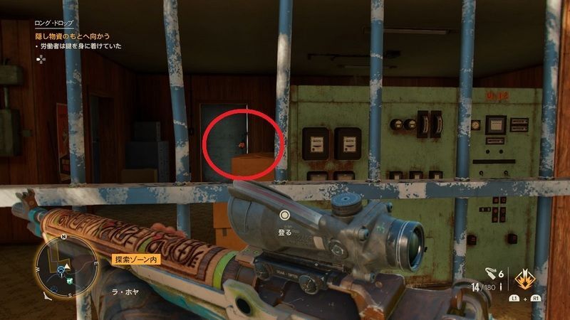 ![]() ・右窓から施錠を銃で撃って破壊 ・屋根に上り反対から中へ入る ・メモに書かれた指示でボタンを操作 ①カレンダーそばの水門制御盤 ②水力モニタリング機器横ボタン ③圧力バルブ ④メインコンソールのボタン ![]() ・ダム中央に置き、グラップルで下がる ・死体を調べ「ダムの小屋のカードキー」 ・小屋に入り武器を手に入れる | |