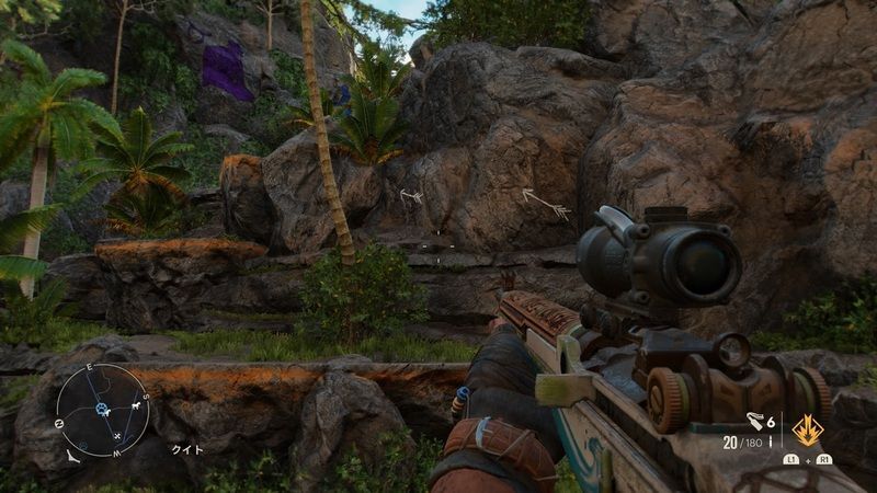 - MAPアイコンに向かって進むと岩肌に「白い矢」が書かれた所があるので、矢の示す方向に進んでいく