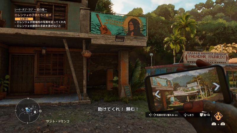 ・パトリオタス・ピーク北西のサント・ドミンゴ![]() ![]() ・写真の建物に近づくと声が聞こえる ・2階へ行くと扉に鍵 ・向かいの建物に上り、施錠を銃で撃ち壊す ・ティアゴと話す ![]() | |