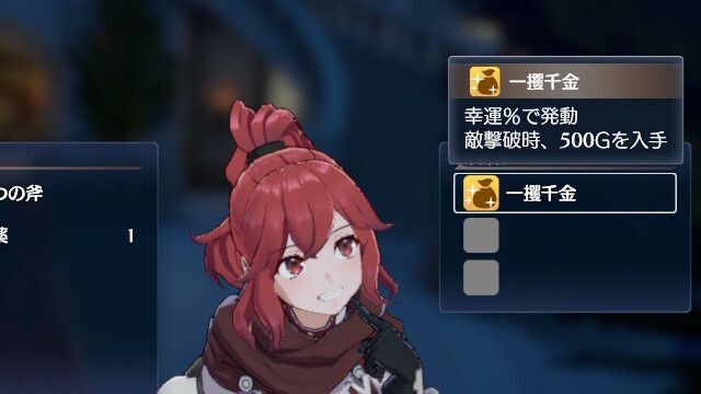 アンナの個人スキル「一攫千金」は敵を倒すと幸運の確率でゴールドを入手することができます。