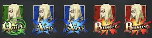 | 自身に無敵貫通状態を付与(1ターン) &宝具威力をアップ(3ターン)<オーバーチャージで効果アップ> +敵全体に強力な攻撃 +味方全体のNPを少し増やす | |