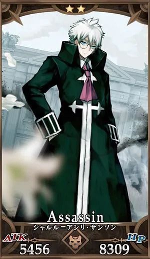 代々、パリにおいて死刑執行を務めたサンソン家四代目の当主。フランス革命という激動の時代において、あらゆる階層の人間を処刑した。人道的配慮を突き詰めた処刑器具『ギロチン』の登場によって、彼は更に処刑の数を増やしていく。