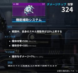 | アシスト照準 | ダメージ | 攻撃時の命中率を6%増加させる |