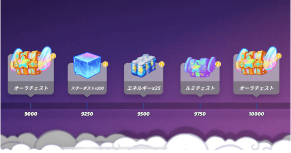 パーティーパスでは、ノヴァを集めてパスレベルを上げることでチェストが手に入る。さらにスターカードを購入すると獲得できる報酬が2倍以上に増加するため、余裕がある人はスターカードを購入しておこう。