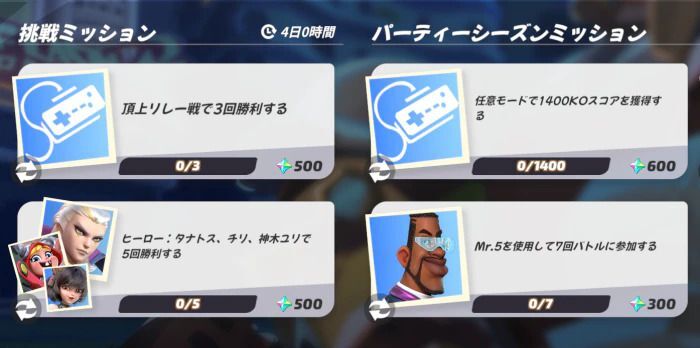 パーティーパスのレベル上げに必要なノヴァは、パーティーミッションを達成することで大量に入手可能だ。ミッションには達成期限があるので、期限が迫っているミッションから優先的にクリアしていこう。