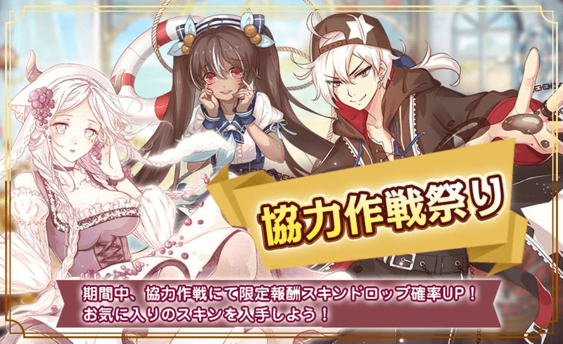 | 内容 | 期間中、協力作戦で限定報酬スキンドロップ確率UP!お気に入りのスキンを入手しましょう! |