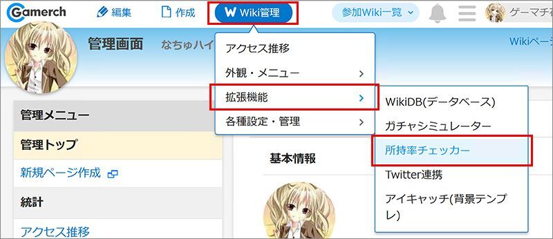 - 所持率チェッカーを利用するには、事前にWikiDBの作成とデータの追加が必要です。