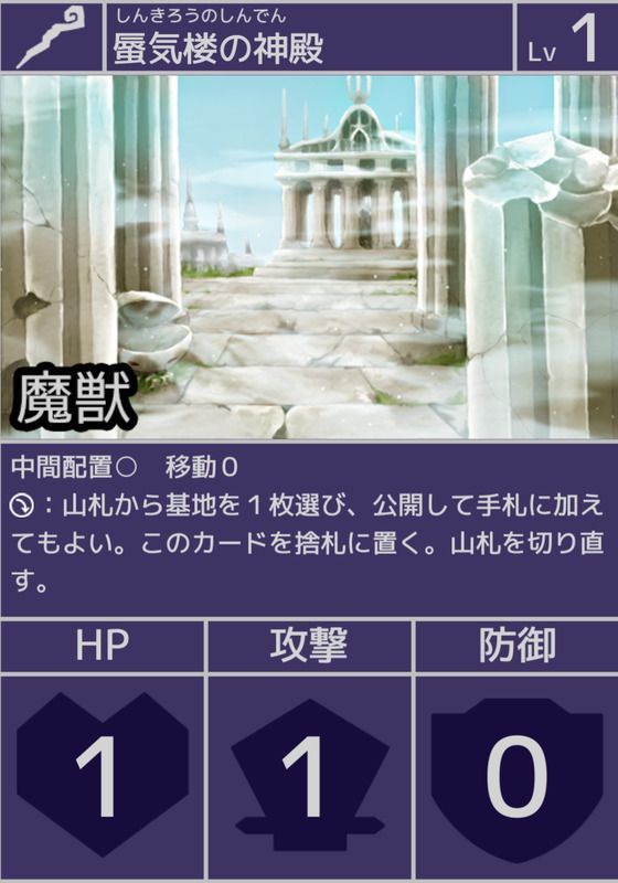 特技により山札から基地を一枚選び手札に加えることができる。特技の使用後は捨札に送られ、山札はシャッフルされる。