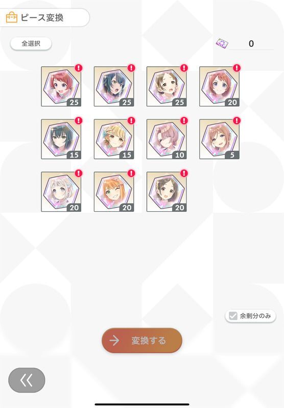 フラワーは、アイテム交換所でSSRのピースと交換する際に使用します。変換で入手できるフラワーはピースのレアリティで異なります。