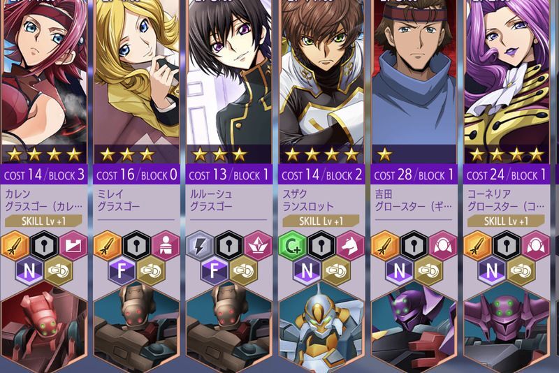 クエスト1-8以降は飛行タイプの敵も現れるので飛行タイプと相性が良いヴィレッタ、コスト回復できるジェレミアやブリタニア軍編成で真価を発揮するシュナイゼルを入れると安定して敵を倒せます。