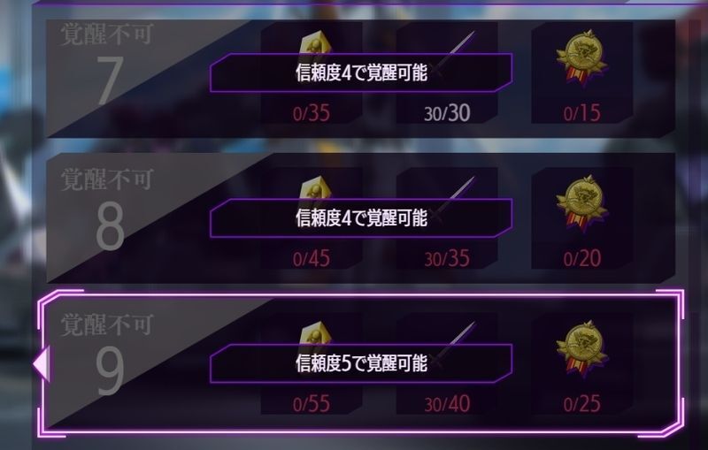 覚醒するアイテムがあっても信頼度が低ければ覚醒できないので覚醒するために信頼度が必要です。