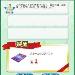 | 上級2 | このクエストを引き受けてから、自分の横丁に襲来した刑天Lv80以上を1回退治しよう | スターカタログギフト×1 | 91217 | ,,100) |