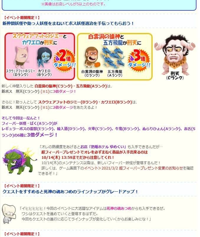 - 2021/10/1~10/4 14:59 なんでも妖怪を退治参戦させよう・指定されたランク妖怪をあつめよう