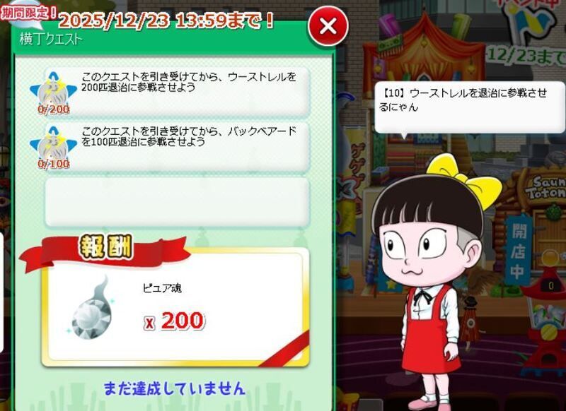 - 12/5 14:00~12/8 13:59 なんでも商品を販売して妖怪を退治参戦させよう