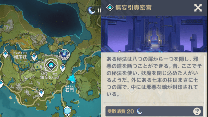 ![]() 曲径通幽の処 | ・原石×40 ・地霊壇の鍵 ・育成素材 |