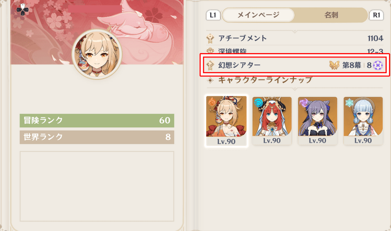スター挑戦星章の数によって、幻想シアターのやり込み度などを把握することができます。