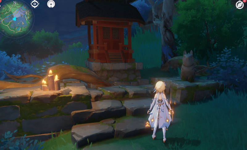 追憶のレンズを通して青く光っている小狐を見ることでギミックが解除できます。