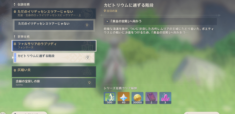| 任務のクリア報酬 | 【おすすめ度】★★★★★ 原神をプレイしているだけで素材を集めることができ一番手軽に集めることが出来ます。 |