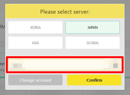 | 3 | 自分のプレイしているサーバーを選択 ※変えていなければ基本はJAPANになっている ![]() |