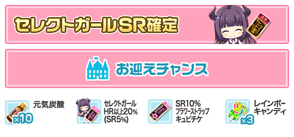 ※ダイエット25ガールSR確定キュピやコスト17以上SR確定キュピは、キャッスルキューピッドに続いて自動的に実行されます。