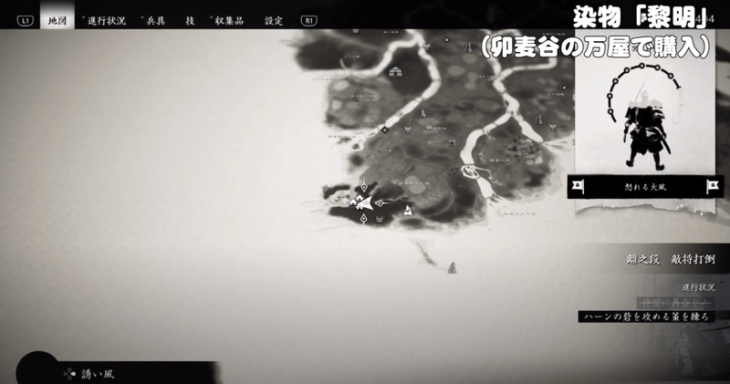 なお、装備の入手先となる上県はストーリーを進めないと到達できないため、トロフィー「狸の装束」を取得できるのはストーリー終盤です。