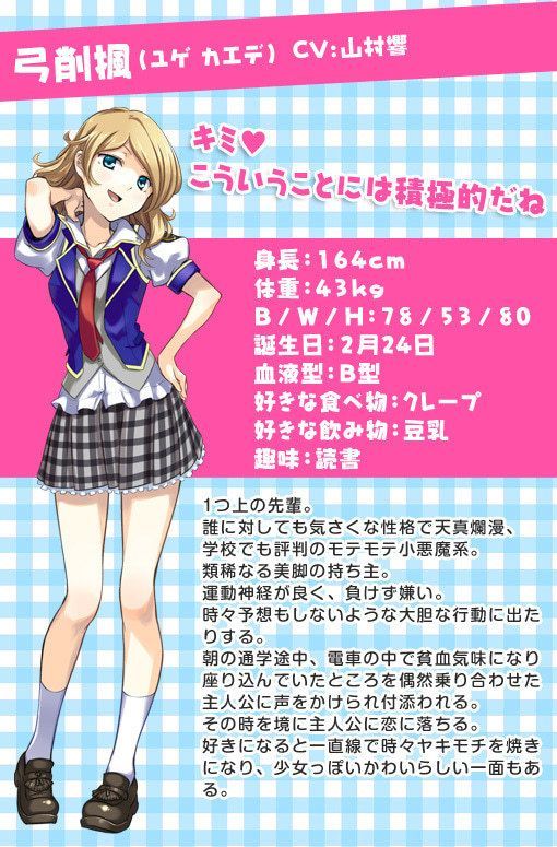 があるため、この設定が弓削楓を全くの別人に変えてしまったのではなく、台詞の通り主人公と接しているうちにボロが出てしまったのだろうと思われる。