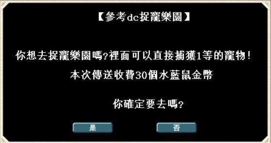 交出30水藍鼠金幣, 並傳送到 捉寵樂園