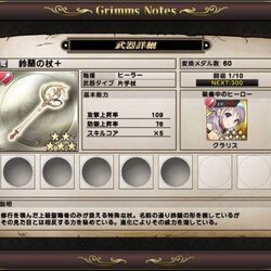 | ナルシスの短杖+ | ☆5 | 241 | 185 | 自分効果R・100/攻撃中効果R・100/攻撃HP回復・中 | イベント | |